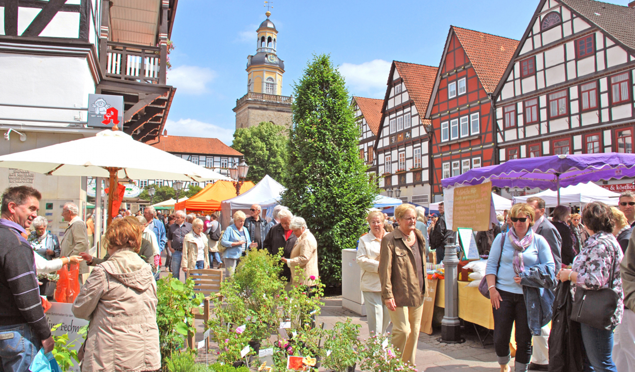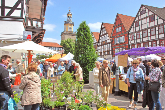 Rintelns historische Altstadt, im Herzen des Weserberglandes an der Grenze zu Nordrhein-Westfalen, lädt im Juni anlässlich der Freizeit-, Breitensport- und Familienveranstaltung "Felgenfest im Wesertal" von Bodenwerder über Hameln bis Rinteln, auf Markt- und Kirchplatz zum Bauernmarkt ein.