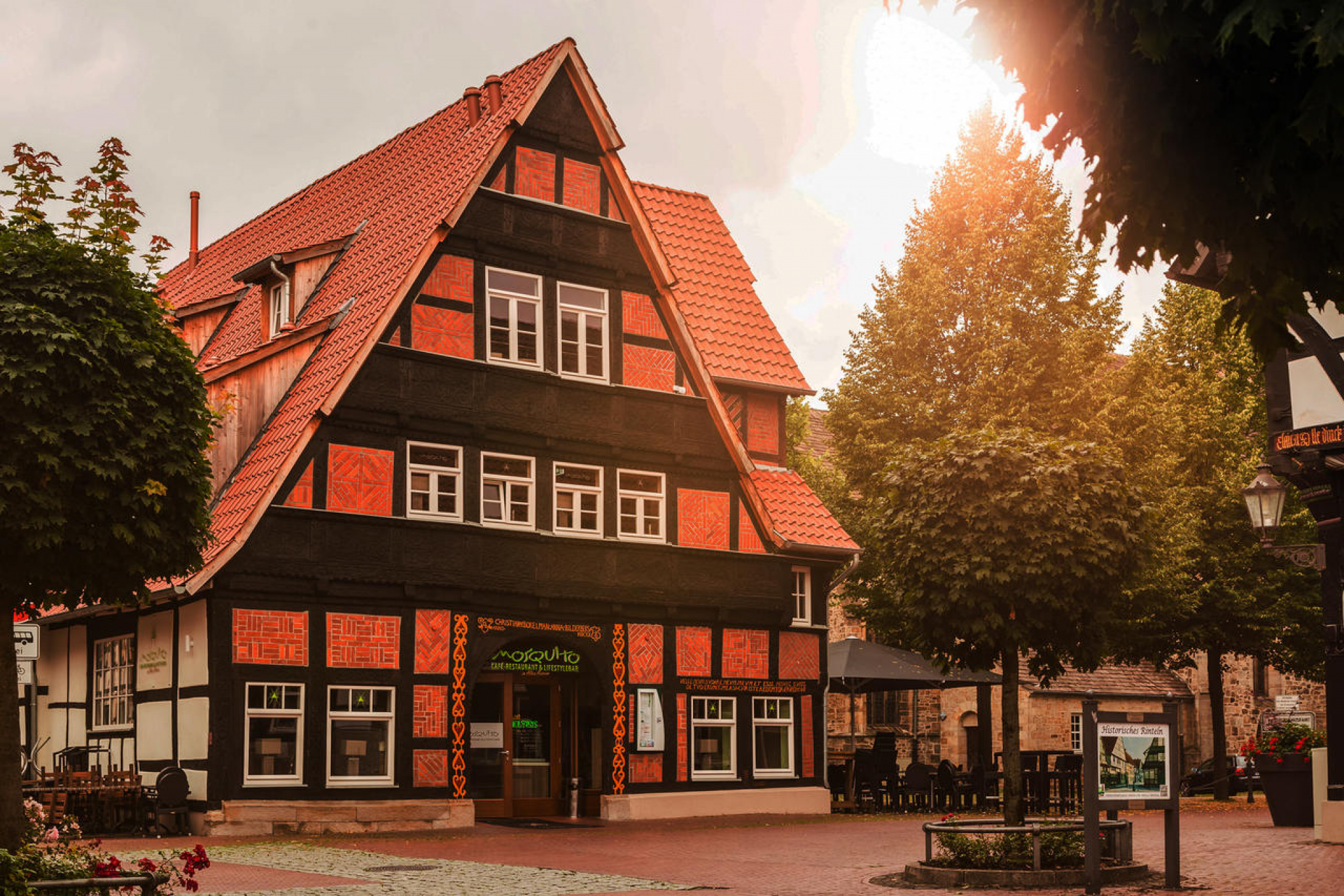 If you now follow this street southwards you reach just before the 'Kirchplatz' one of the most beautiful houses of Rinteln, the ’Altes Museum’.This richly decorated half timbered house was fo the Rinteln museum for a long time.