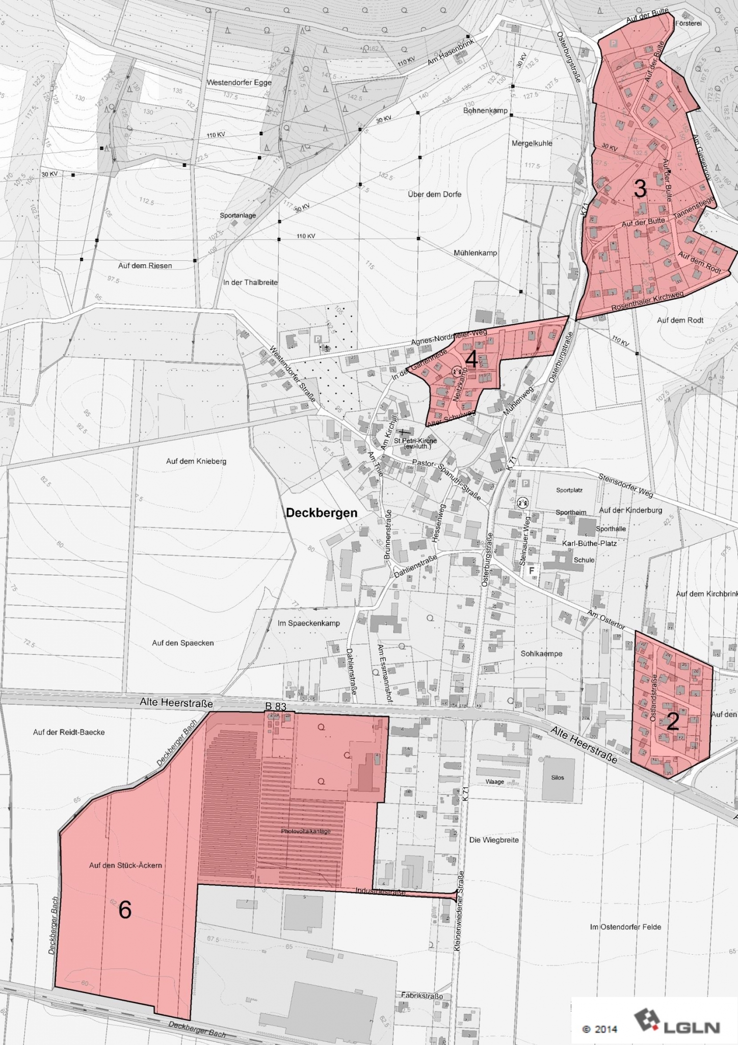 In der Grafik sind die Geltungsbereiche der Bebauungspläne vom Ortsteil Deckbergen dargestellt. Klicken Sie auf die Grafik um die Karte zu vergrößern bzw. um heranzuzoomen.