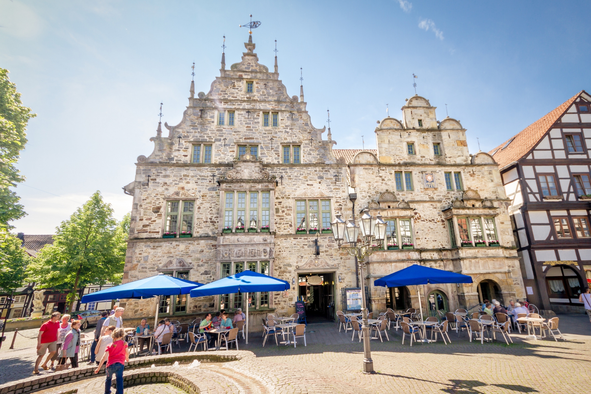 Die Altstadt Rintelns zeichnet sich durch den Besitz zahlreicher Fachwerkbauten aus, in einigen Straßen finden sich noch weitgehend geschlossene Ensembles aus dem 16.-18. Jh. Das heutige Rathaus (Klosterstraße 19) ist ein stattlicher Werksbau von 1898 mit Motiven der deutschen Renaissance.