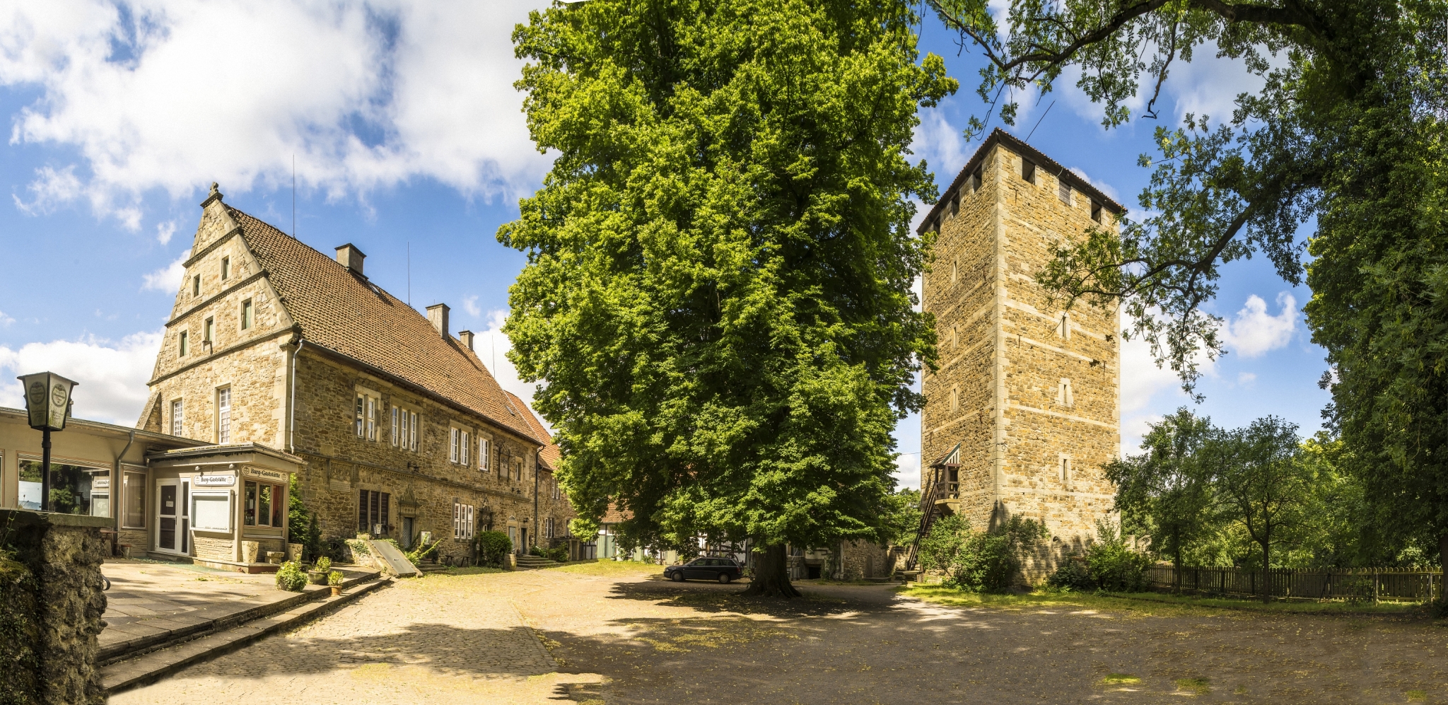 Auf einem südlichen Vorsprung des Wesergebirges, weithin das Tal beherrschend erhebt sich der 1110 erstmals erwähnte Stammsitz des Schaumburger Grafengeschlechtes, die Schaumburg.