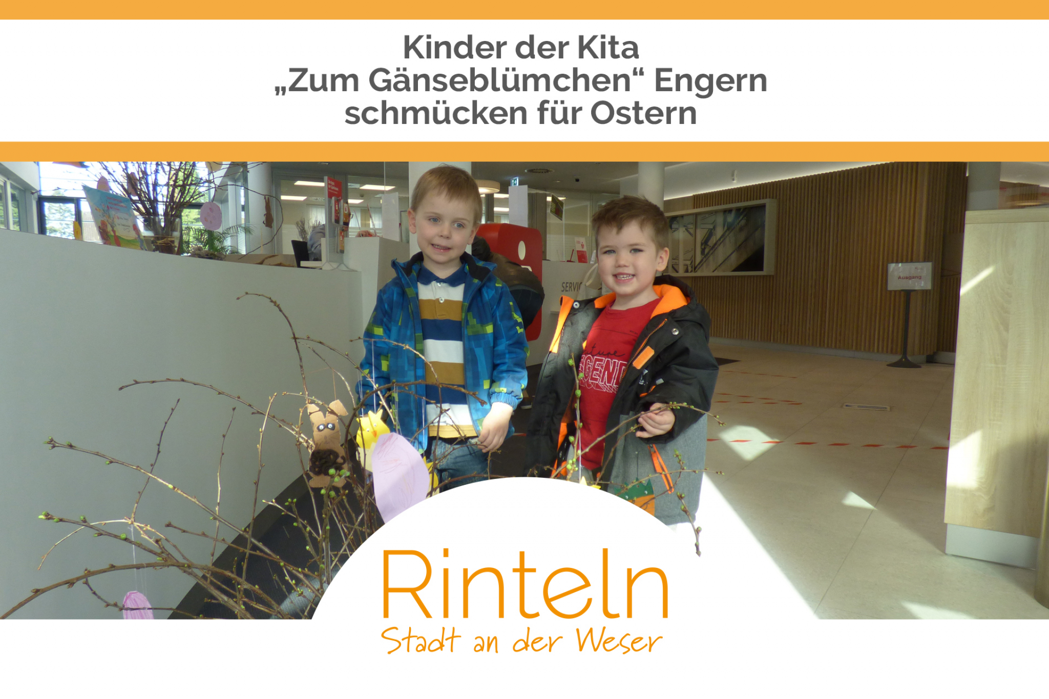 Kinder der Kita „Zum Gänseblümchen“ Engern schmücken für Ostern