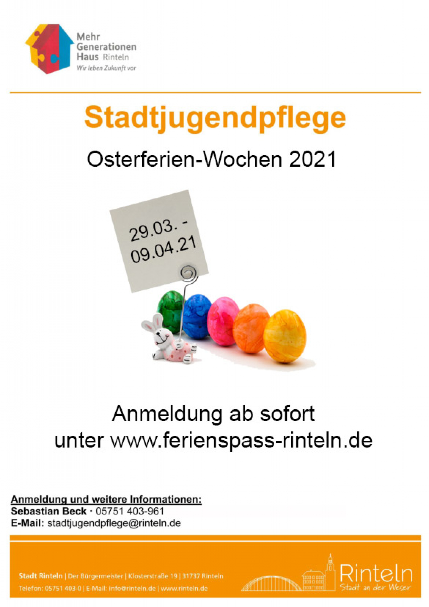 Osterferien-Wochen in Rinteln vom 29.03. bis 09.04.2021 - Jetzt anmelden!