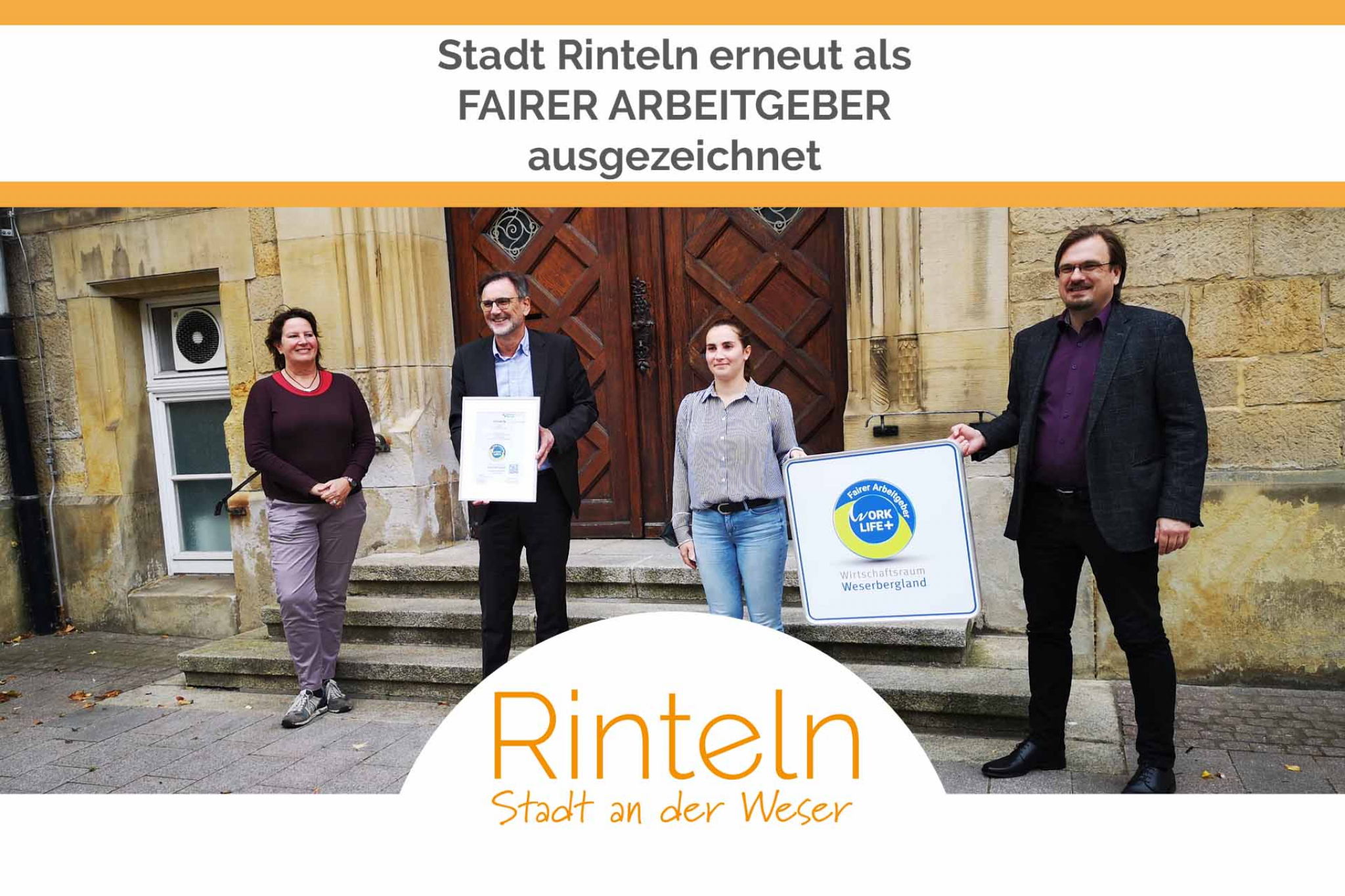 Die Stadt Rinteln mit Bauhof und Kindertagesstätten wurde 2021 erneut mit dem Arbeitgebersiegel „fairer Arbeitgeber Weserbergland – WorkLifePlus“ zertifiziert. Diese Auszeichnung würdigt ihre Anstrengungen, den Beschäftigen eine hohe Qualität der Arbeitsbedingungen zu gewährleisten.