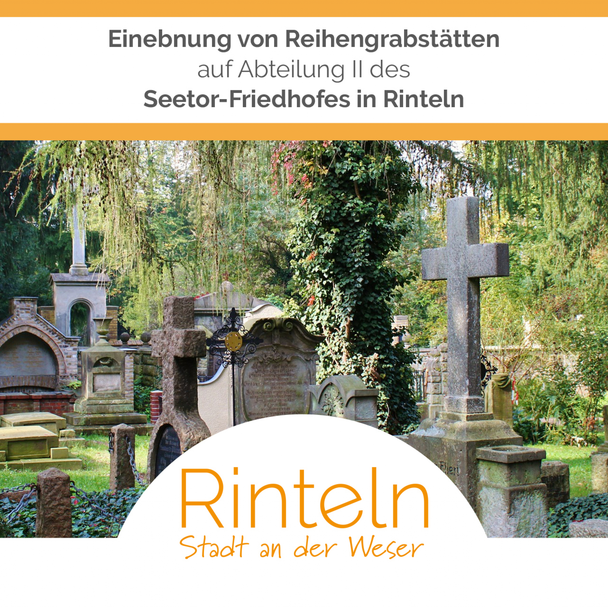 Die Einebnung auf dem Seetor-Friedhof in Rinteln erfolgt ab 01.09.2022 und betrifft folgende Grabstätten auf Abteilung II: Nrn. 147 c, 147d , 147 h und 526 bis 551.