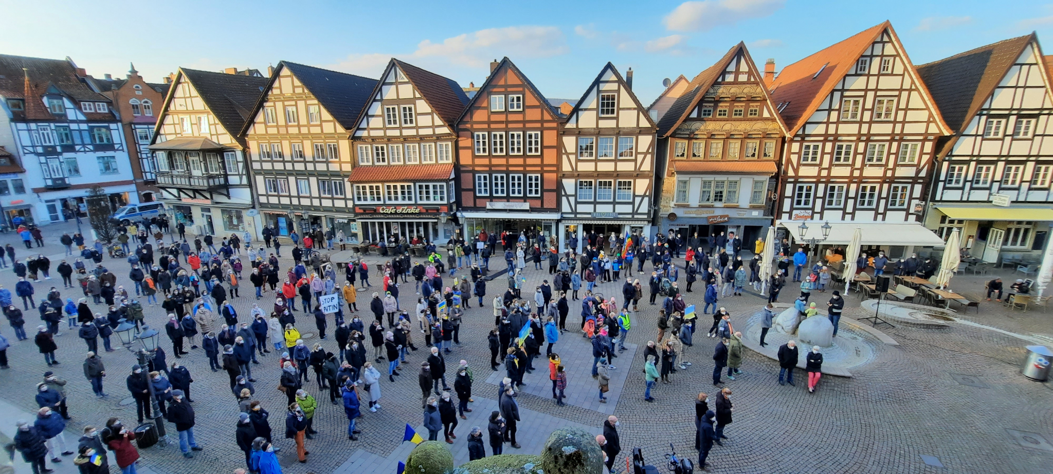Unter dem Motto "Rinteln steht zusammen - SOLIDARITÄT mit der UKRAINE!" lädt ein breites Bündnis aus Kirche, Politik und Verwaltung zu einer Friedensdemo auf dem Marktplatz in Rinteln ein.