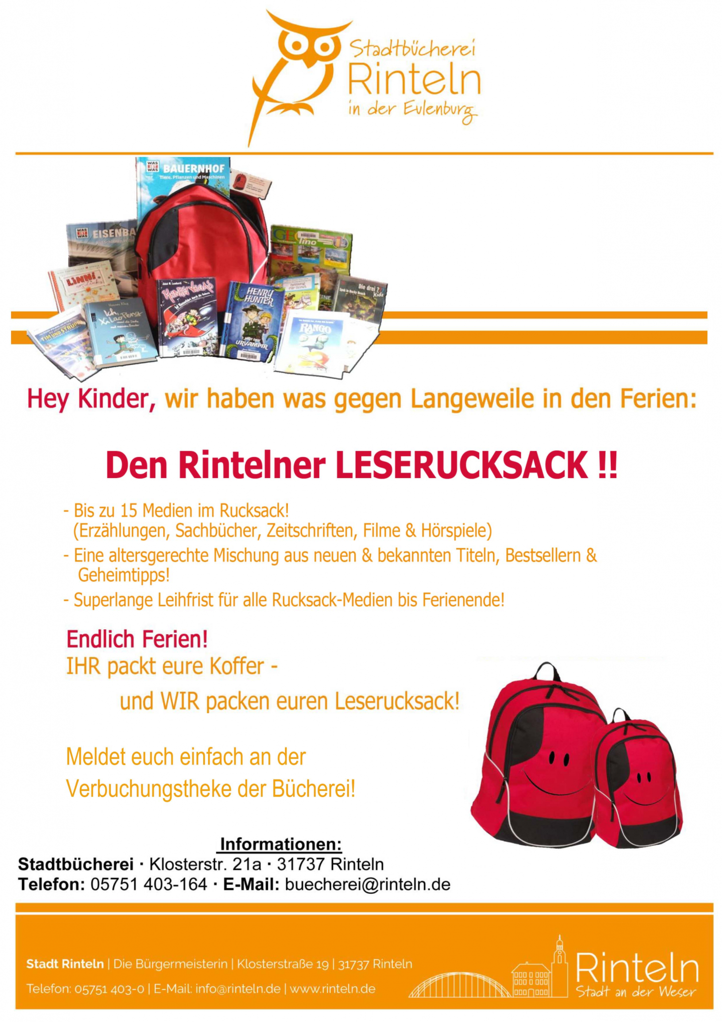 Leserucksack in der Stadtbücherei Rinteln - Gegen Langeweile in den Ferien