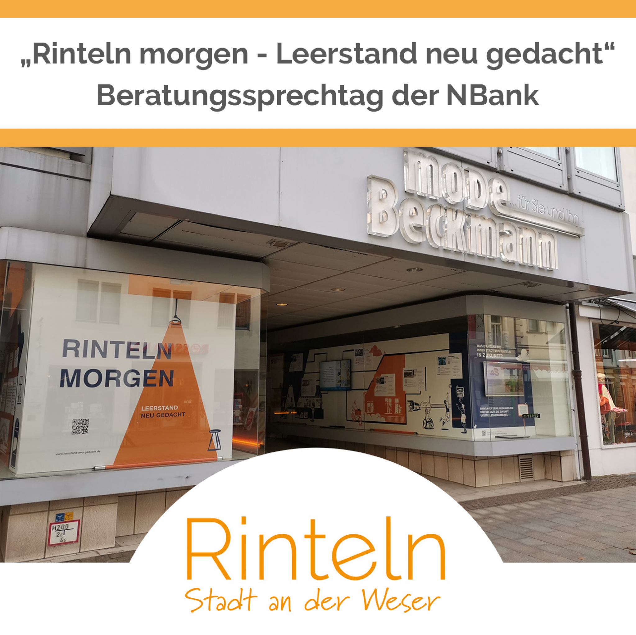 Im Rahmen des Projektes „Rinteln morgen – Leerstand neu gedacht“ der Stadt Rinteln finden die Gespräche am 21. Februar 2023 individuell und vertraulich zwischen 09:00 Uhr und 16:00 Uhr mit Herrn Coesfeld (NBank) und einem Vertreter der Wirtschaftsförderung des Landkreises Schaumburg statt.