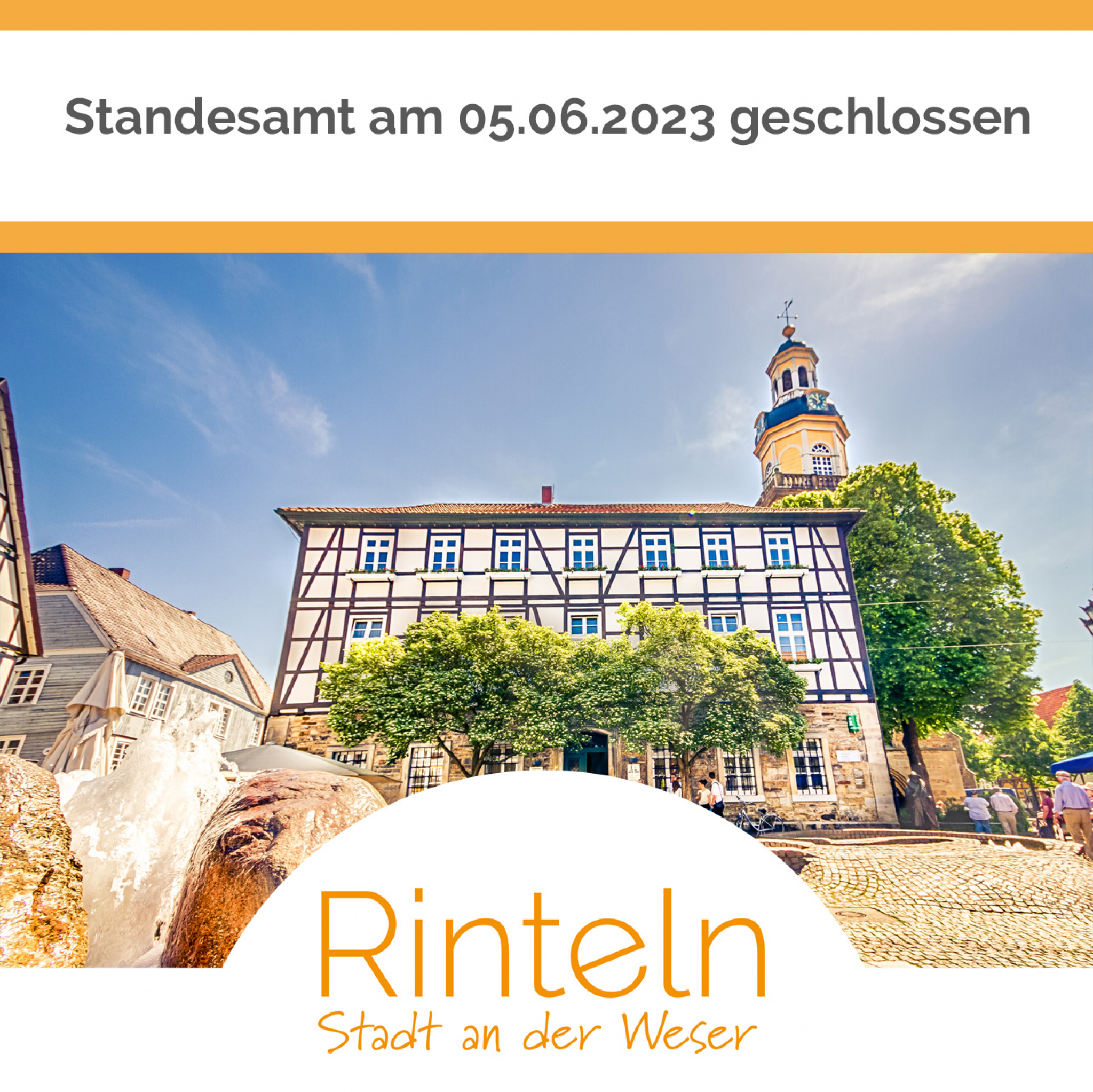 Das Standesamt ist am Montag, den 05.06.2023 aufgrund einer Fortbildung geschlossen. In dieser Zeit können auch keine telefonischen Auskünfte erteilt werden. Wir bitten um Beachtung!
