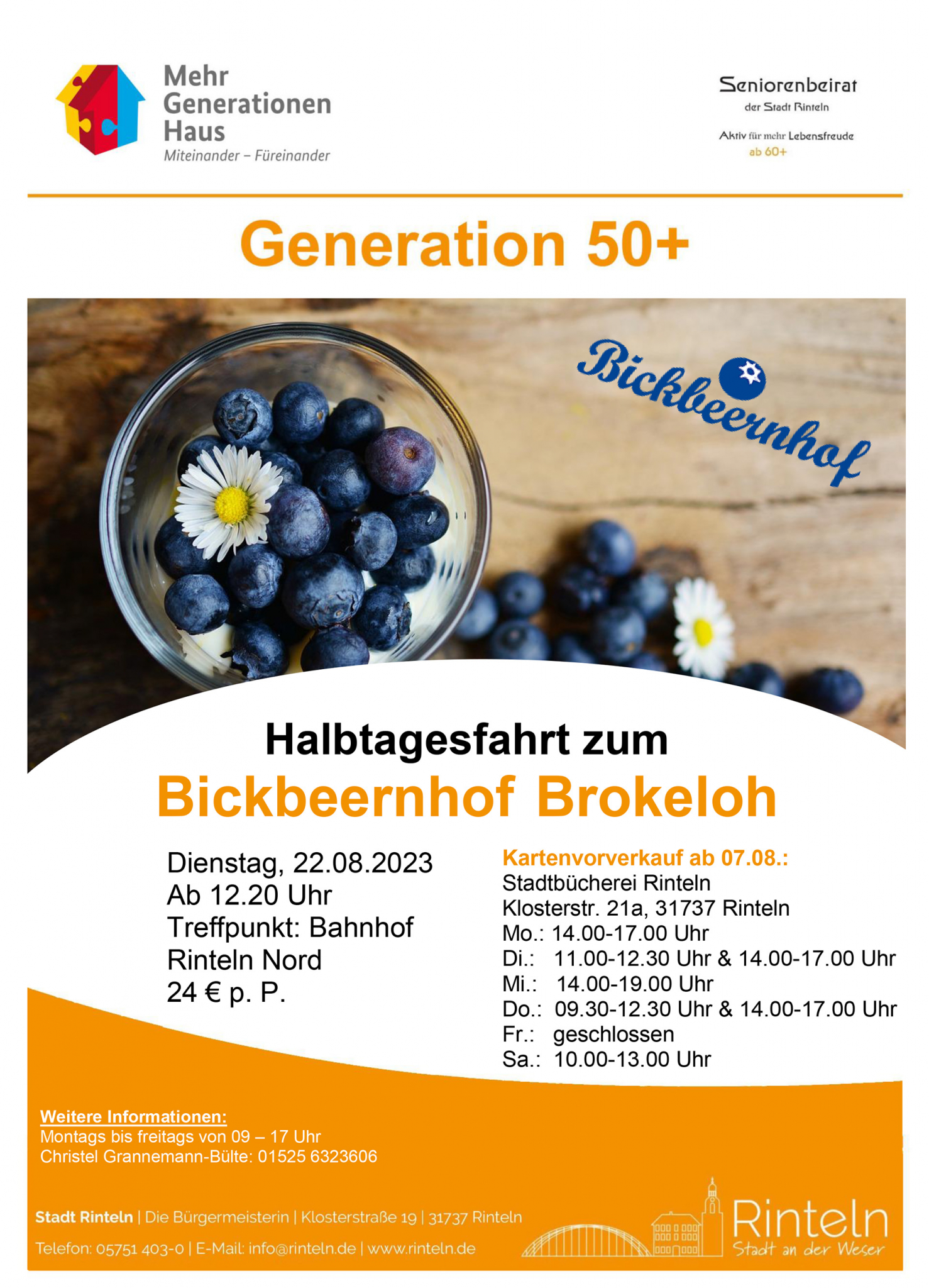 Machen Sie Kurzurlaub auf dem Bickbeernhof in Brokeloh! Der Seniorenbeirat der Stadt Rinteln lädt in Kooperation mit der „Generation 50+“ zu dieser entspannten Halbtagesfahrt ein.