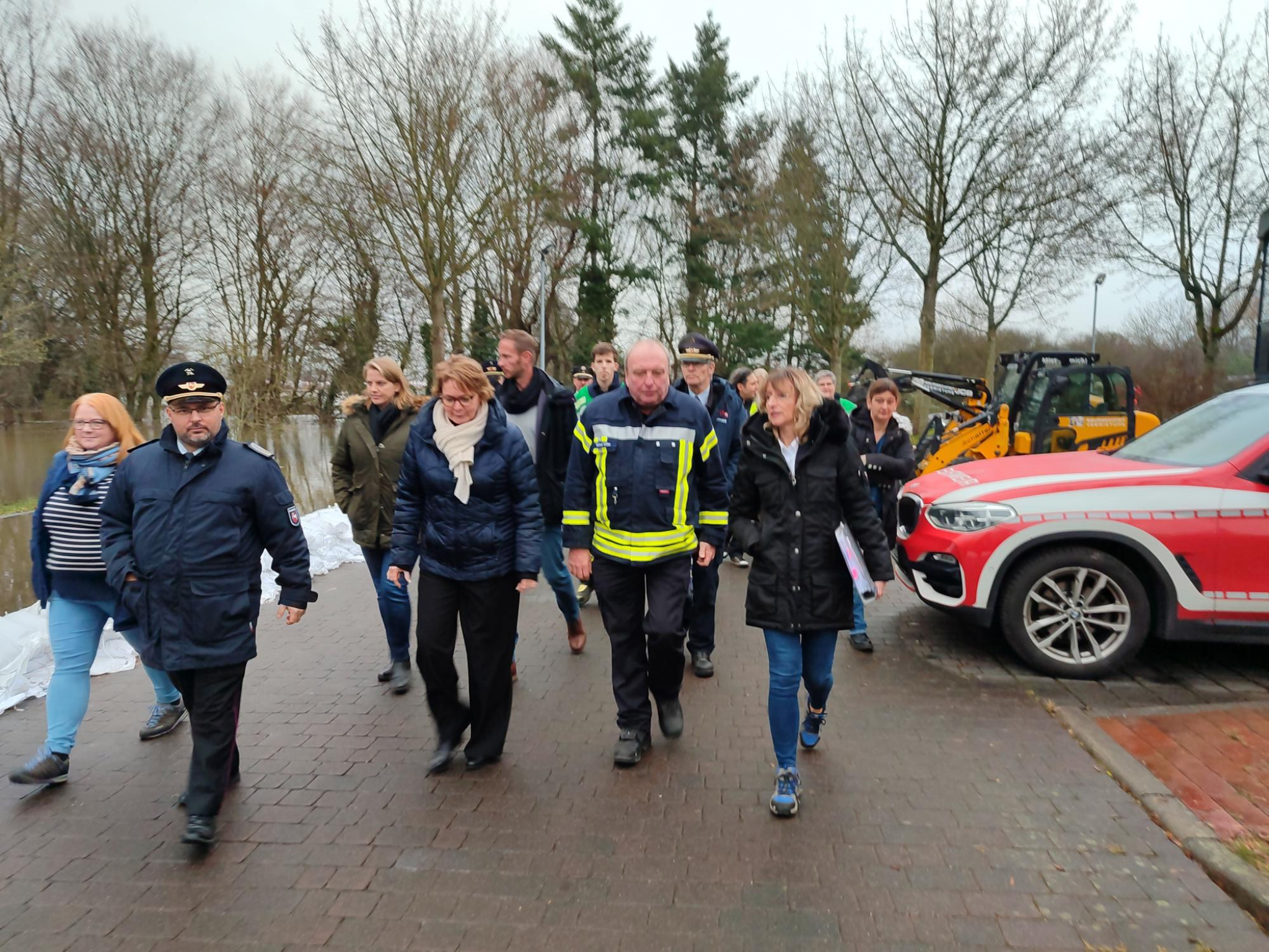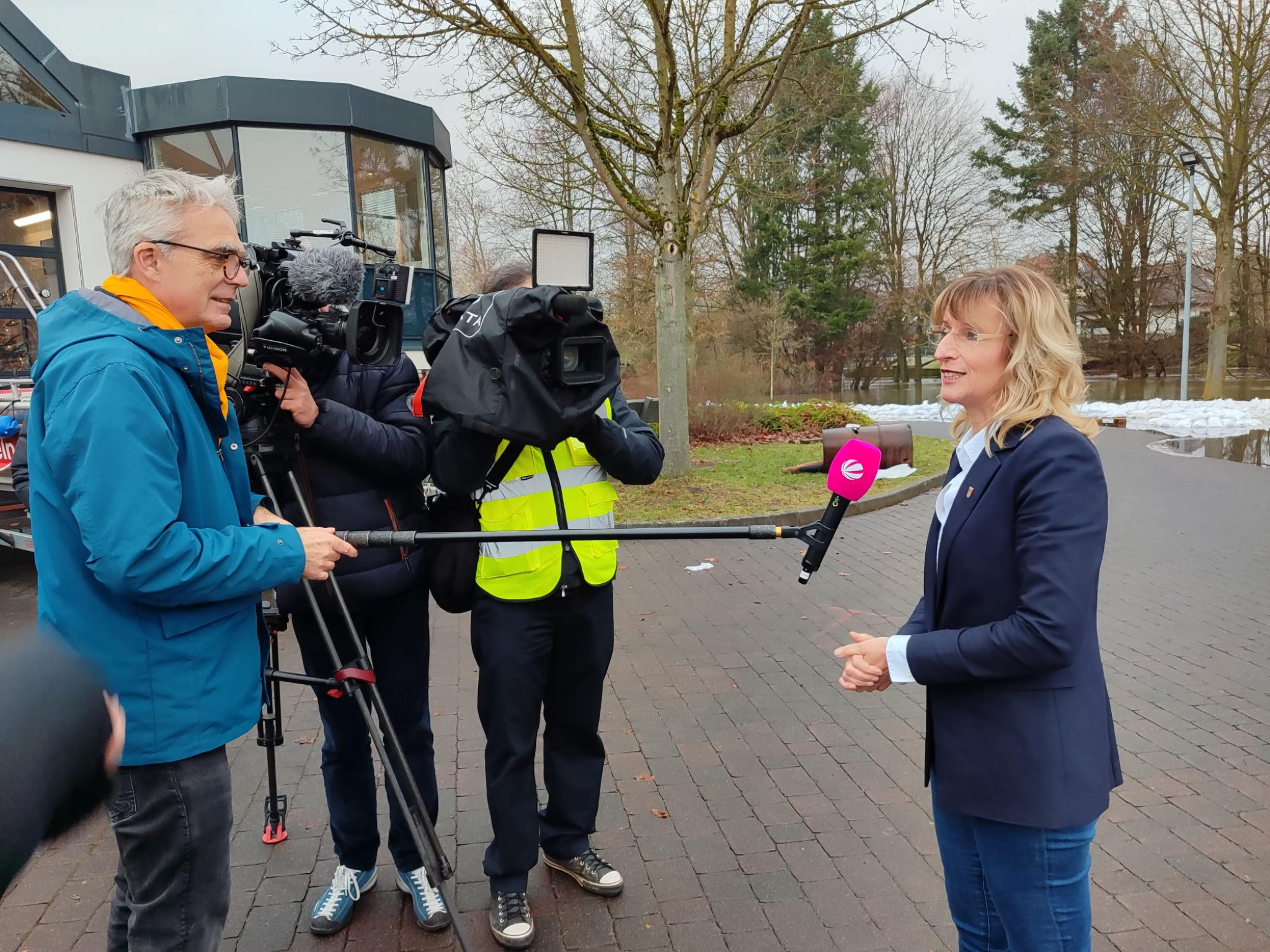 Bürgermeisterin Andrea Lange empfängt zur Stunde die niedersächsische Innenministerin Daniela Behrens und erläutert die aktuelle Hochwassersituation in Rinteln.