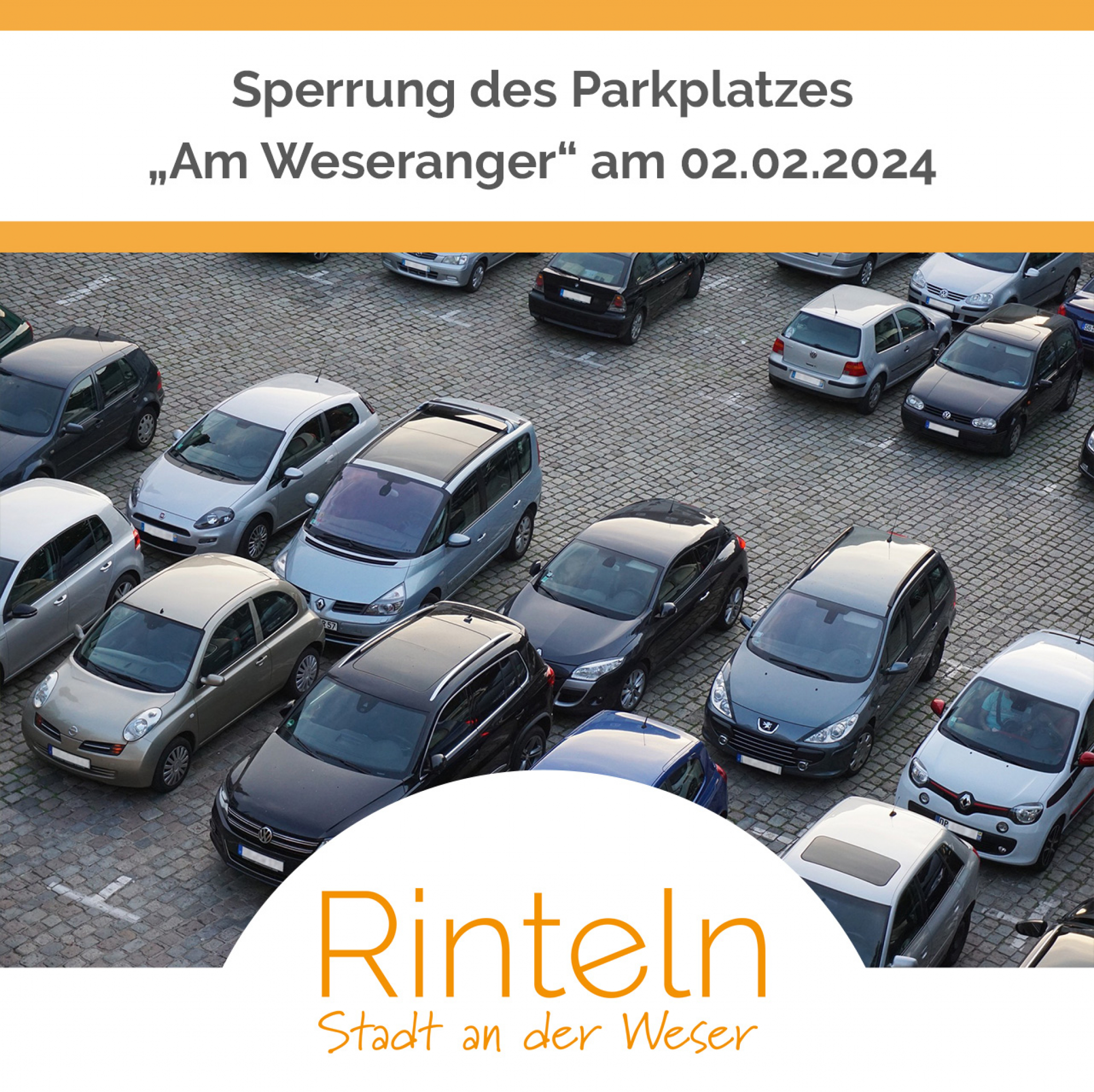 Am morgigen Freitag, den 02.02.2024, ist der hintere Teil des Parkplatzes „Am Weseranger“ ab 13:30 Uhr aufgrund einer Versammlung gesperrt.