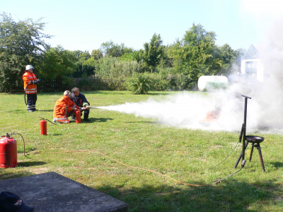 17 Mitarbeiterinnen und Mitarbeiter der Stadt Rinteln wurden am 02. Juli 2008 von der Ortsfeuerwehr Rinteln in die Geheimnisse der Brandbekämpfung eingewiesen. Im Mittelpunkt stand der Umgang mit Handfeuerlöschern. Nach einem ca. 45minütigen theoretischen Teil, geleitet von Sven Thiele, haben alle Teilnehmer/innen praktische Übungen mit Handfeuerlöschern durchgeführt.