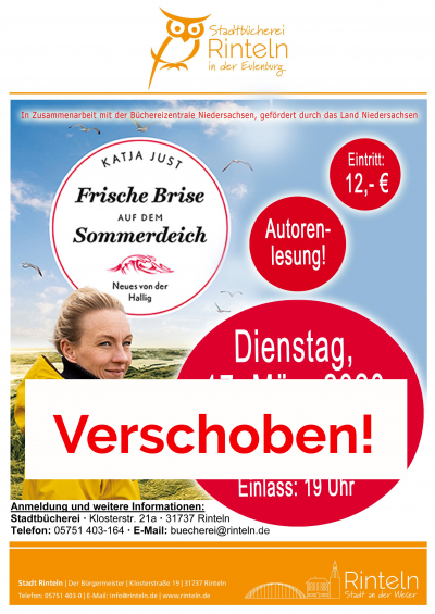 Mit ihrer Lesung "Barfuß auf dem Sommerdeich" im März 2018 hat Katja Just auch in Rinteln große Begeisterung für die Hallig Hooge geweckt. Ein Grund die sympathische Spiegel-Bestseller-Autorin erneut zu einer Lesung in die Stadtbücherei Rinteln einzuladen. Am Dienstag, 17.