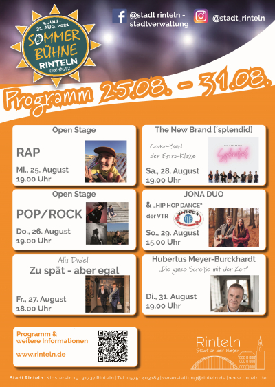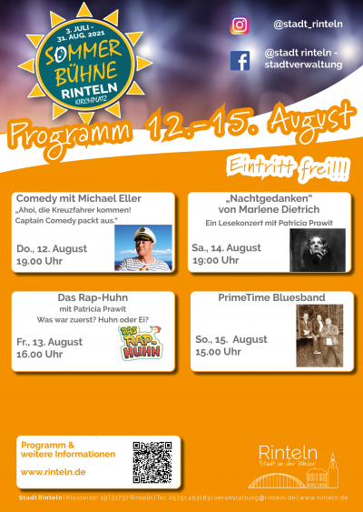 Endspurt auf der Rintelner Sommer-Bühne 2021 - Programm vom 25.08. – 31.08.2021