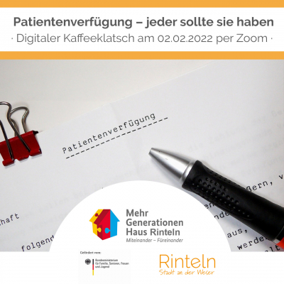 Digitaler Kaffeeklatsch am 02.02.2022 per Zoom: Patientenverfügung – jeder sollte sie haben