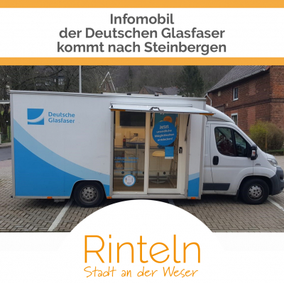 Die Stadt Rinteln und der Ortsbürgermeister Sascha Gomolzig teilen mit, dass das Infomobil der Deutschen Glasfaser am 05.03.2022 nach Steinbergen kommt.