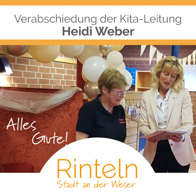 Am Freitag, den 09.09.2022 wurde Heidi Weber, langjährige Kita-Leitung der Integrativen Kita „MinniMax“ Exten offiziell von der Verwaltung in den Ruhestand verabschiedet. Umrahmt wurde die Verabschiedung von einem gelungenen Programm, dass die Mitarbeiterinnen und Mitarbeiter gemeinsam mit den Kindern der Einrichtung liebevoll vorbereitet und einstudiert haben