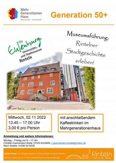 Die „Generation 50+" lädt ein zur Museumsführung durch Die Eulenburg.Museum Rinteln