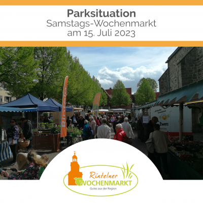 Aufgrund einer kirchlichen Veranstaltung steht unseren Wochenmarkt-Besucher*innen der Parkplatz auf dem Kirchplatz am kommenden Samstag, 15. Juli 2023 nicht zur Verfügung. Wir bitten um Beachtung!