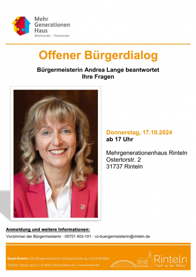 Bürgermeisterin Andrea Lange und das Mehrgenerationenhaus laden alle Rintelnerinnen und Rintelner herzlich zu einem persönlichen Treffen ein.