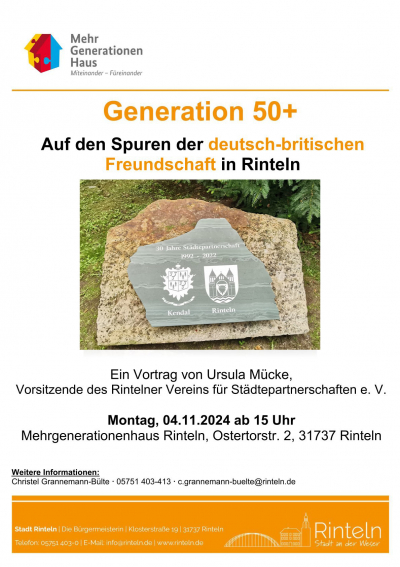 Im Rahmen der Sprechstunde des Rintelner Seniorenbeirates lässt Ursula Mücke, Vorsitzende des Rintelner Vereins für Städtepartnerschaften e. V., die 32-jährige Geschichte der Städtepartnerschaft mit Kendal Revue passieren.