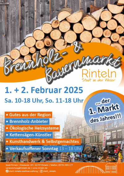 Rintelner Brennholz- und Bauernmarkt am 1. und 2. Februar 2025