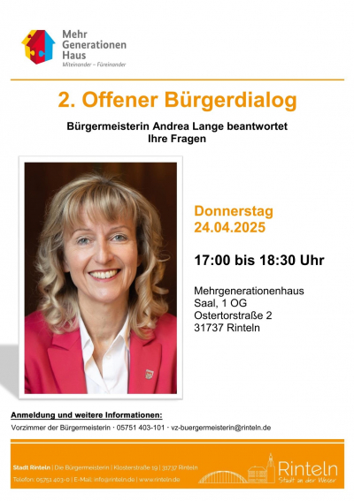 Anknüpfend an den 1. Bürgerdialog im Oktober 2024 laden Bürgermeisterin Andrea Lange und das Mehrgenerationenhaus alle Rintelnerinnen und Rintelner herzlich zu einem weiteren Bürgerdialog ein.