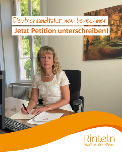 Die Stadt Rinteln und die beteiligten Kommunen der „Nenndorfer Erklärung“ rufen alle Bürgerinnen und Bürger dazu auf, die Petition zur Neuberechnung des Deutschlandtakts unter https://petition.widuland.de/ zu unterzeichnen.