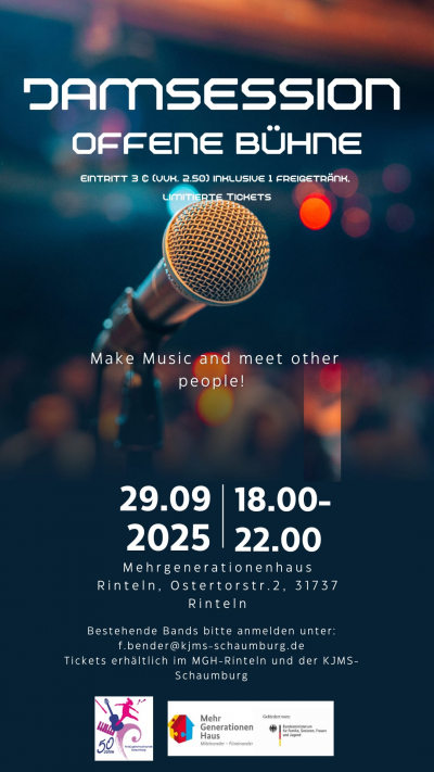 Mit Musik gemeinsam aktiv werden. Das Mehrgenerationenhaus Rinteln und die KJMS Schaumburg laden alle Interessierten zu einer Jam Session ein.