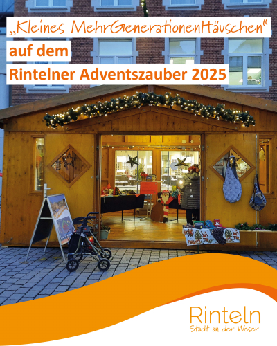 Die Stadtverwaltung möchte auch in diesem Jahr interessierten Vereinen, Organisationen, Verbänden etc. die Möglichkeit geben, in der Zeit vom 28. November 2025 bis 28. Dezember 2025 (ausgenommen 24. bis 26. Dezember) ihre Arbeit und Angebote im „kleinen Mehrgenerationenhäuschen“ auf dem Rintelner Adventszauber zu präsentieren.